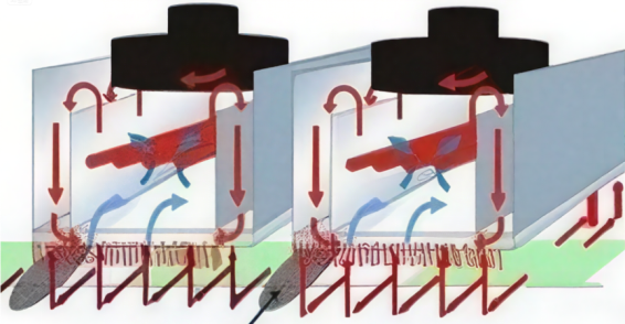 風葉熱風加熱結構的穿透力不足,而風輪增壓式熱風結構正是為解決這個問題誕生的,香蕉视频软件增壓熱風結構的核心原理是通過強製高壓氣流穿透高元件陰影區,解決傳統熱風爐的熱傳遞不均勻問題。